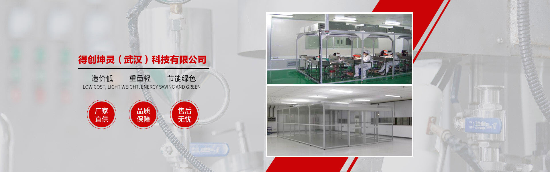 得創坤靈成立于2010年6月,專業從事食品無菌車間、GMP車間、電子無塵車間、食品醫藥包裝車間、醫療器械車間、潔凈棚、土建工程簡易房、無菌實驗室、組合式空調機組等項目的設計、裝修、施工、調試、安裝為一體的凈化工程公司,承接十萬級、萬級、千級、到百級的凈化車間、無塵車間、無塵室、潔凈廠房、潔凈室工程的改造與建設。 作為中國潔凈室系統工程及設備制造高品質、專業化的代表,得創秉承“追求完美品質、超越客戶期望”的理念,通過對客戶生產環境的深入研究及多年的工程實踐,積累了豐富的潔凈室空調凈化系統及節能優化設計、項目管理及施工經驗,綜合實力始終處于業界領先地位。 公司資質齊全,包括裝飾裝修工程二級、機電安裝二級、電子與智能化二級、消防工程二級、環保工程二級;擁有多名高級工程師及暖通設計工程師,有著醫藥凈化工程設計、食品無菌食設計、電子無塵車間設計經驗,長年與設計院有著良好的合作和溝通關系。公司多年專業從事凈化工程安裝業務,擁有數次在全國各地有著豐富安裝經驗的安裝工程隊伍,在大型管道及彩板安裝方面有著豐富的安裝經驗和先進的現場管理體系。 公司產品廣泛服務于電子、光電、微電子、光纖光纜、精密機械、生物制藥、食品飲料、航空航天等眾多領域。我們始終以技術為中心、以創新為動力、以服務為己任。以一流的產品質量,良好的售后服務,參與到激烈的市場競爭中來,贏得客戶的支持與信賴。 隨著公司的持續發展、隊伍的日益壯大,公司將一如既往地堅持"以客戶為中心"的理念,在激烈的市場競爭中迎頭奮進,以"創一流品牌、建一流企業"的品牌拓展戰略,面對機遇與挑戰,開創一片嶄新的天地! 品質成就夢想、秉承口碑相傳、得創凈化……